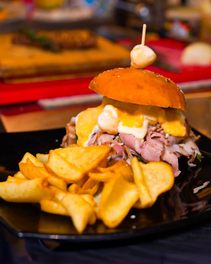 Leggi altroHamburger di carne di manzo Siciliano realizzato direttamente da noi!👨🍳⠀⠀Ingredienti 👉 Carne di manzo siciliano, lattuga mista, pomodoro, provola delle colline sambugesi, uovo biologico fritto, guanciale di suino nero dei Nebrodi, sal...
